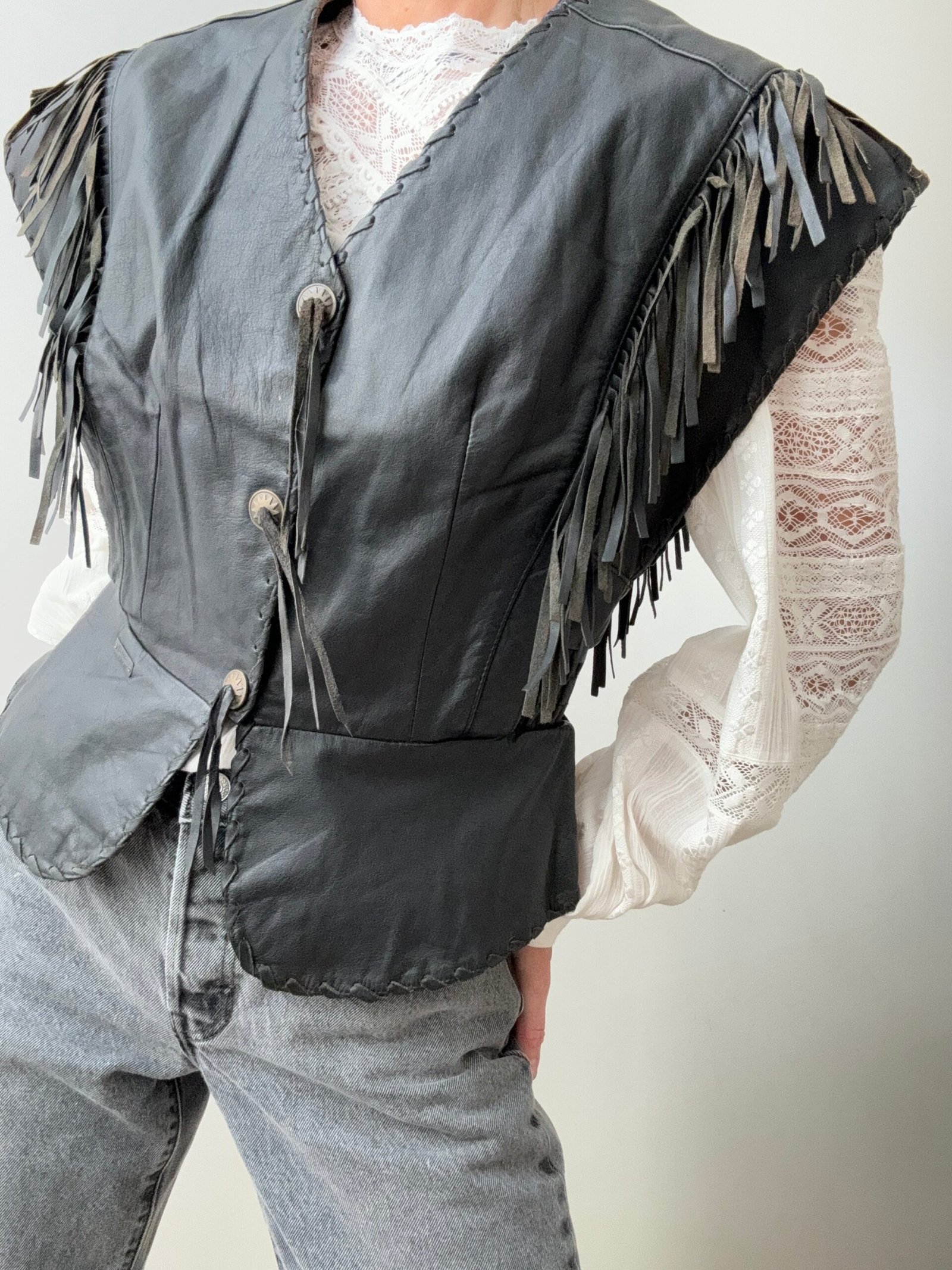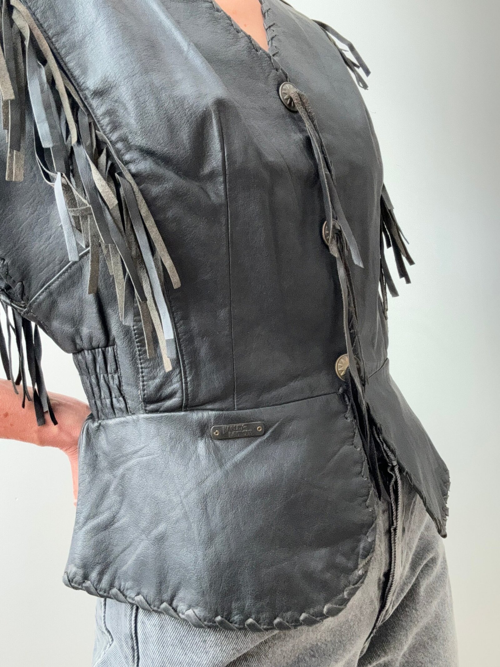 Incredible Find. This almost 80’s shape Harley Davidson tasseled leather vest. 100% Leather.