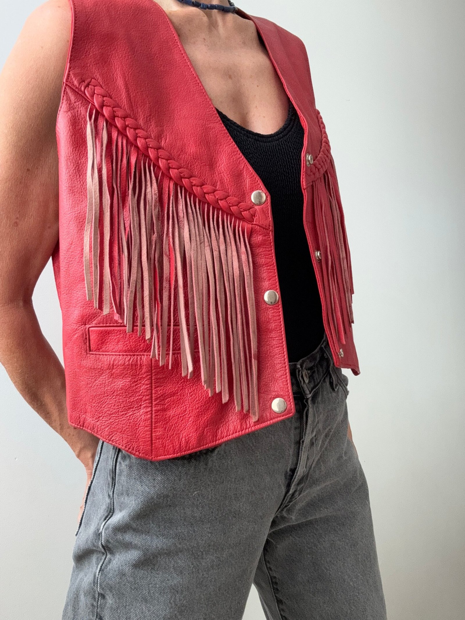 Be the first to review “Vintage Tassel Red Leather Vest”